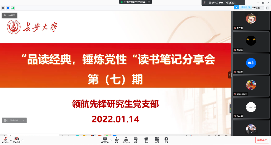 2022年1月14日下午16:00,澳门太阳城唯一正版授权网站 领航先锋党支部组织支部成员线上开展了第七期读书笔记分享活动,本次活动由支部成员贾宝栋同志和朱建伟同志做读书笔记分享。支部全体党员参加了此次活动。