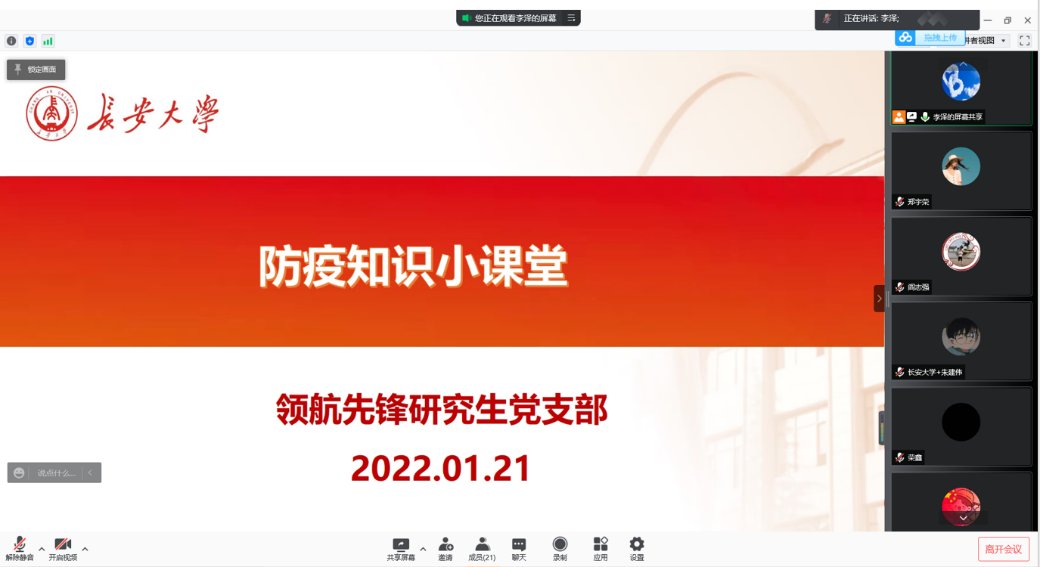 2022年1月21日下午16:00,澳门太阳城唯一正版授权网站 领航先锋党支部组织支部成员开展线上防疫知识小课堂。支部全体党员参加了此次学习活动,本次活动由支部副书记李泽同志主持。