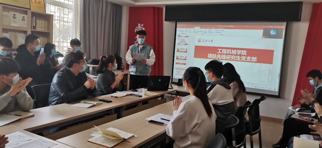 会议第一项,由支部书记高婷婷老师带领支部成员学习党的十九届六中全会精神和省委十三届十次全会精神,统一思想,提高认识。