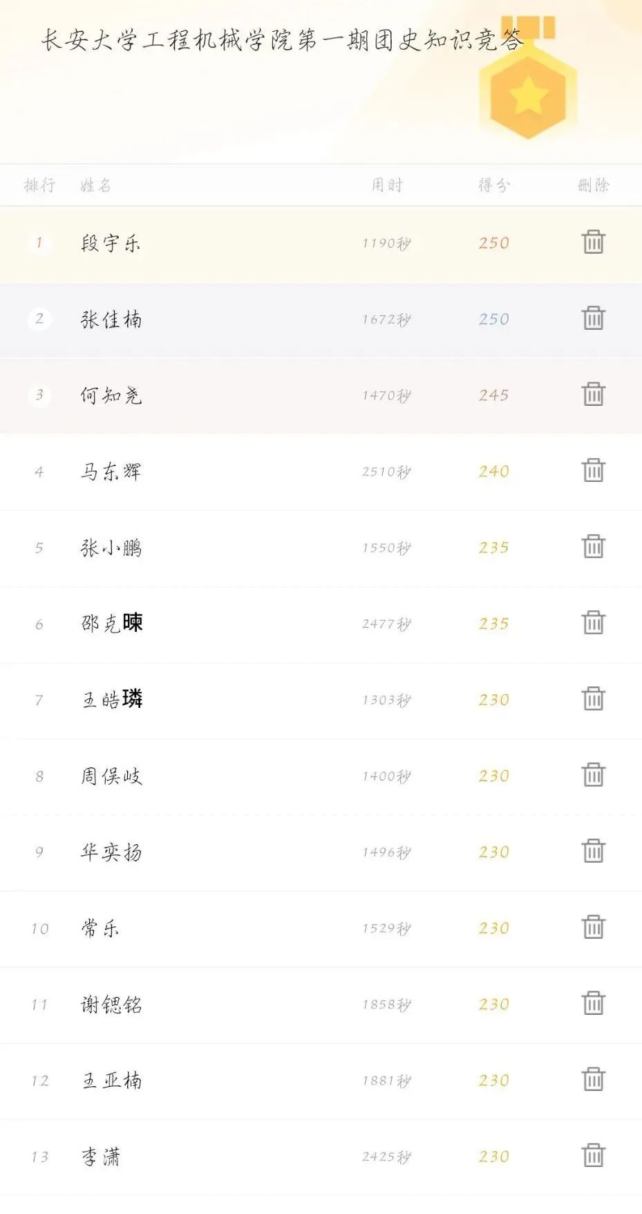 活动结束,最终段宇乐同学以满分的成绩荣获第一名,张佳楠和何知尧同学获得第二名,马东辉、张小鹏和邵克暕同学获得第三名。