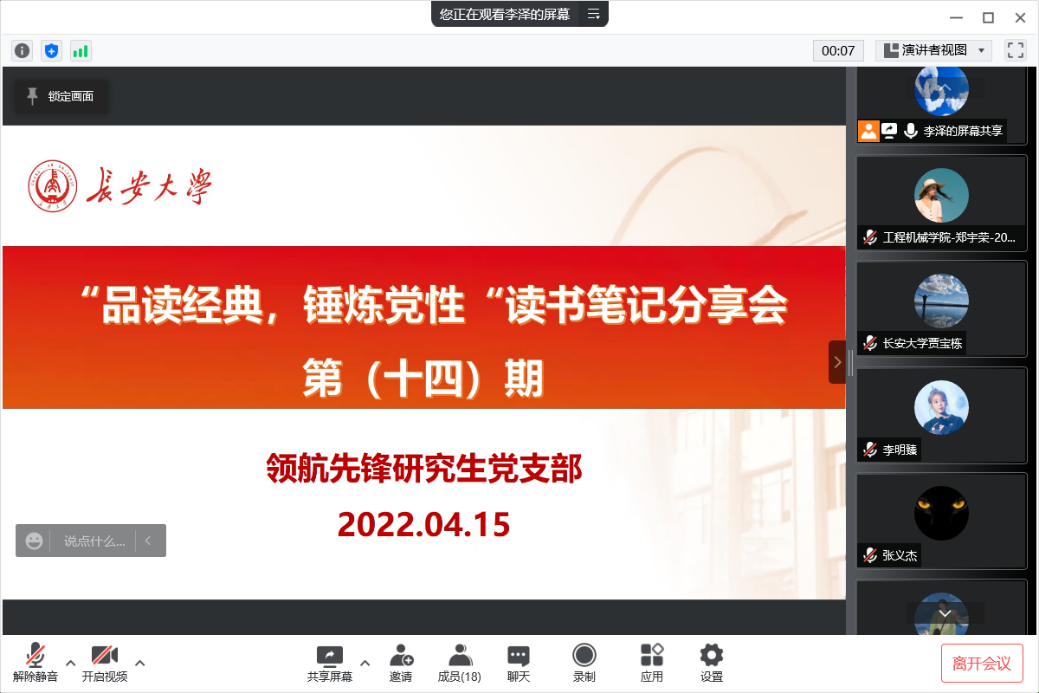 2022年4月15日上午10:00,澳门太阳城唯一正版授权网站 领航先锋党支部组织支部成员线上开展了第十四期读书笔记分享活动,本次活动由支部成员张腾同志和海来阿叶同志做读书笔记分享。支部全体党员参加了此次活动。