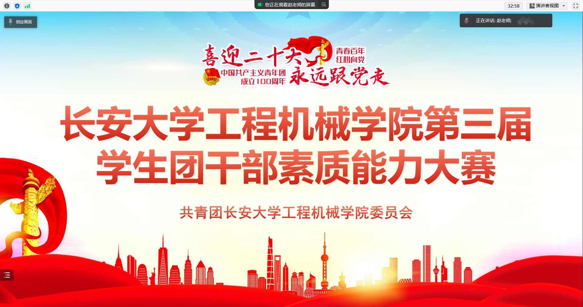 为不断提升学院学生团干部思想政治工作的理论水平、专业素养和工作能力,按照学校《关于举办长安大学第三届团干部素质能力大赛的通知》的相关要求,机械学院团委于5月7日—5月9日举行了第三届学生团干部素质能力大赛。5月7日学院团委分年级组织开展了理论知识测试笔试初赛,5月8日—5月9日,学院团委组织了线上和线下微团课讲授,学院各团学组织和学生社团指导老师担任评委。