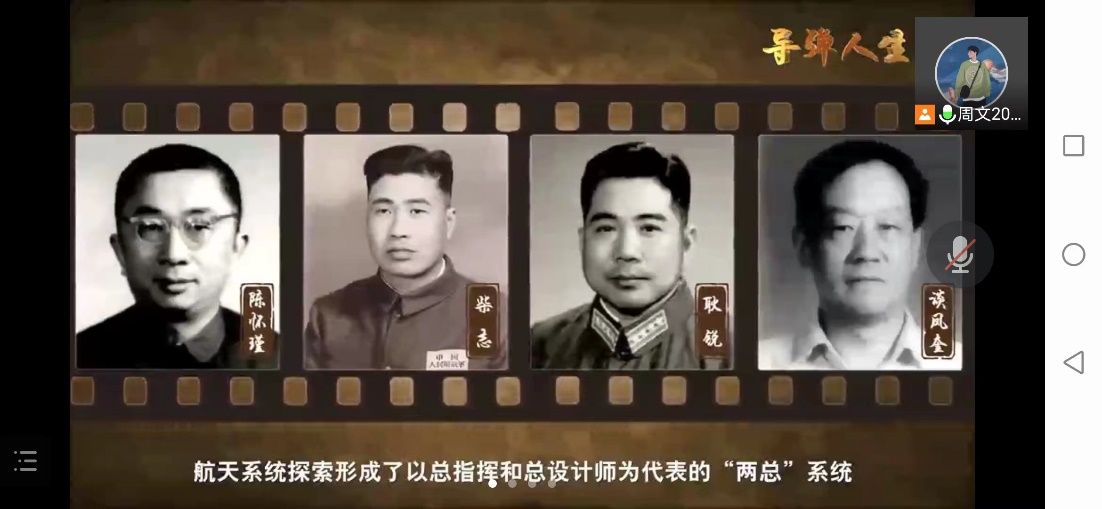 今年是二院成立65周年,在航天工程的研制和实践中,航天系统探索形成了以总指挥系统和总设计师系统为代表的“两总”系统。为铭记型号“两总”的突出贡献,二院党委编印出版《导弹人生》一书,共收录12位型号“两总”的故事。《导弹人生》以客观、严谨、求实的态度讲述型号“两总”的一生,既有对他们成长经历的精彩描写,也有对“两总”系统型号研制历程的专业解读。这是二院传承航天精神、弘扬科学家精神的一次生动实践,也是讲述航天故事的生动教材。观看完该宣传片后,支部成员纷纷发言表达了自己的感想。