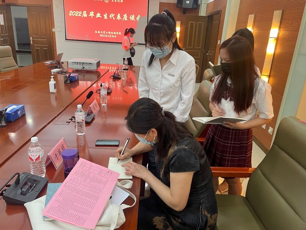 6月20日下午,澳门太阳城官网 2022届毕业生代表座谈会在北辰楼第二会议室举行。澳门太阳城官网 党委书记于丽娟、党委副书记雷剑、各系主任、教学主管、学办主任、学院团委书记、毕业班辅导员与20位毕业生代表面对面进行座谈。座谈会由党委副书记雷剑主持。