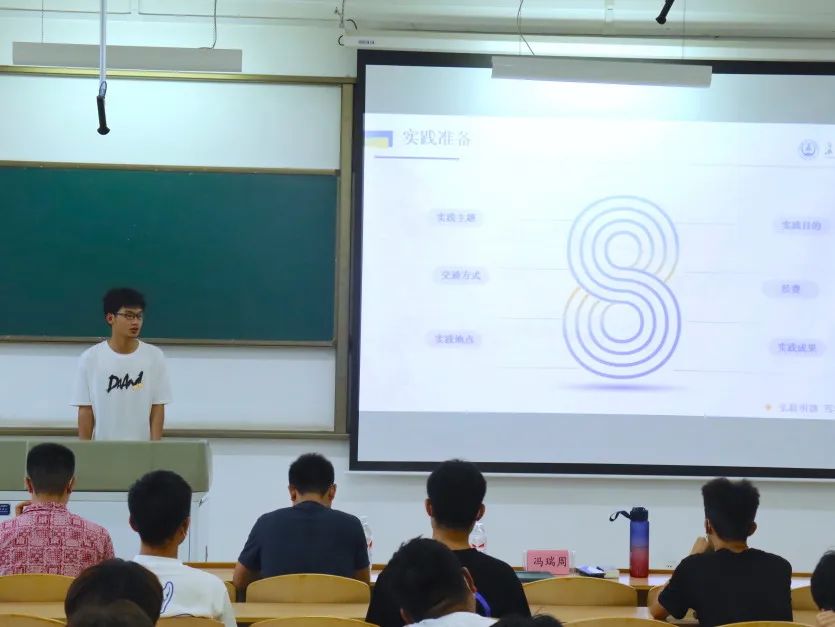 首先,冯瑞周同学以自己参加的青海西宁项目为例,从暑期社会实践的准备步骤、主题选定、实践行程规划、实践团队分工等方面详细分享了暑期社会实践方面的经验。