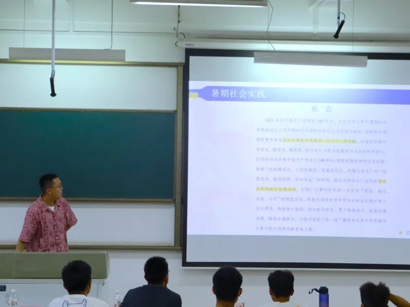 随后,韩浩鹏同学以自己参加的陕西铜川项目为例,详细讲解了暑期社会实践立项申报书、实践策划书、实践调研报告、新闻报道投稿、实践成果撰写及评优等方面的注意事项和经验方法。