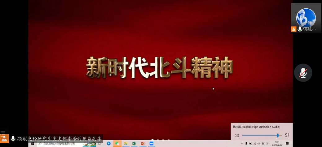 2022年7月22日,澳门太阳城唯一正版授权网站 领航先锋党支部组织支部成员线上观看共产党员网推出微视频《精神的追寻——新时代北斗精神》。