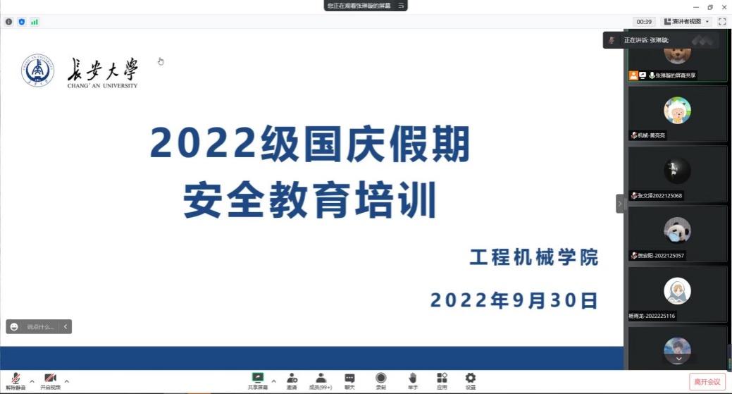 为进一步做好2022级研究生新生入学教育工作,落实国庆期间研究生安全教育管理要求,9月30日,澳门太阳城唯一正版授权网站 研究生新生教育暨国庆假期安全教育培训会通过腾讯会议顺利召开。研究生培养与管理主管王翠娟和辅导员高婷婷、张琳璇出席会议,2022级全体研究生新生参加会议。会议由张琳璇主持。