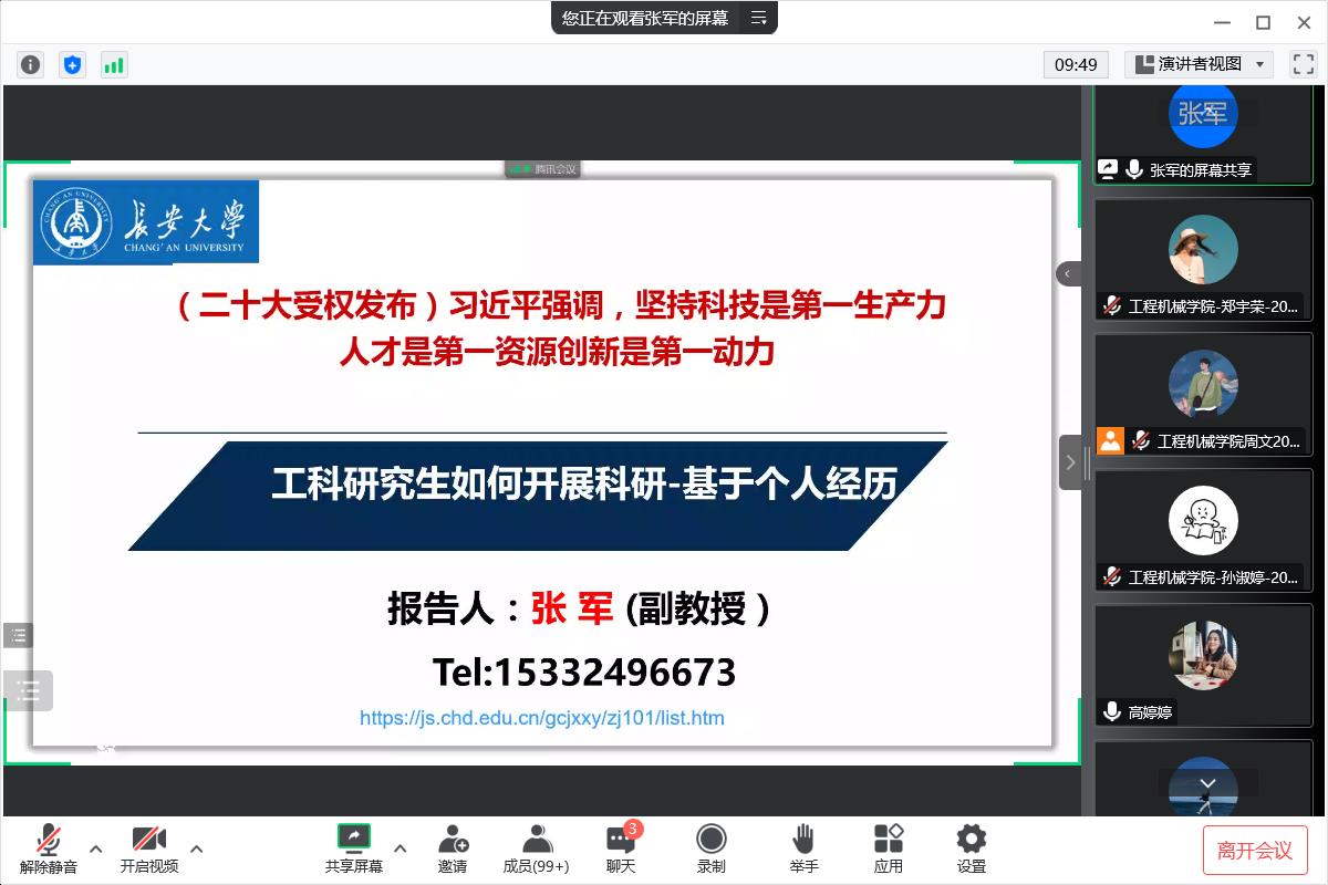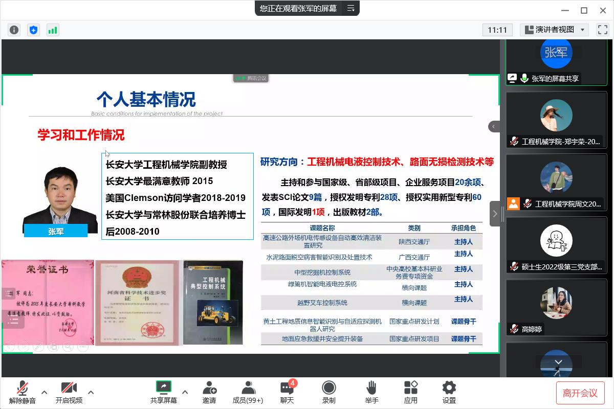 2022年11月3日晚19:00,澳门太阳城唯一正版授权网站 领航先锋研究生党支部邀请澳门太阳城官网 张军老师讲“工科研究生如何开展科研——基于个人经历”为主题的线上专题党课。本次活动由党支部书记高婷婷主持,支部全体成员参加。