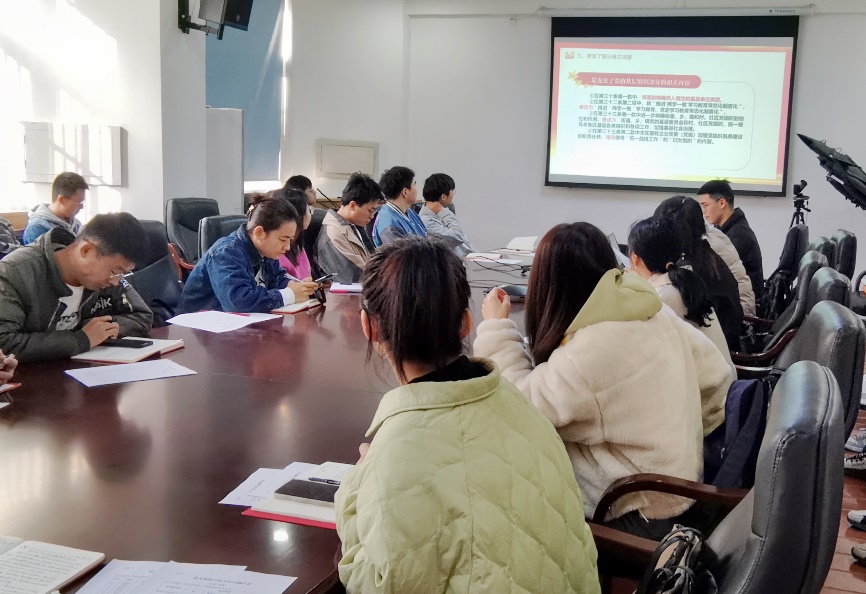本次会议分为两个阶段。第一阶段由支部副书记周文带领支部成员认真学习《党的二十大报告》、《习近平总书记在党的二十届一中全会上的重要讲话精神》等内容,统一思想,提高认识。随后,支部组织委员王晨光通报此次组织生活会谈心谈话和征求意见建议情况。紧接着,周文代表党支部委员会向党员大会述职,报告一年来党支部工作,通报党支部委员会查摆问题情况,并请党员进行评议。