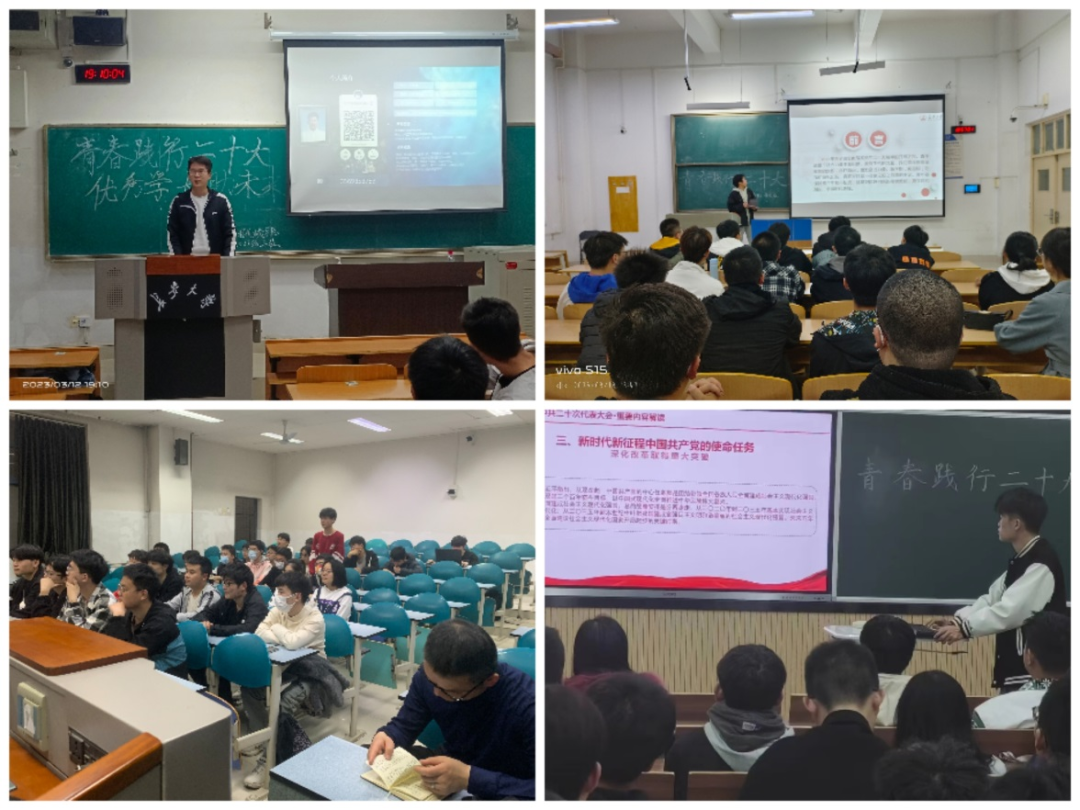 1班以雷锋月为契机,开展了学习雷锋精神主题班会,并利用周末时间前往学校图书馆开展图书修补志愿服务活动。3班、4班在班会环节邀请高年级优秀学长围绕学习、校园生活、实践竞赛、班级建设等方面进行经验分享,帮助同学们树立学习目标,合理规划大学生活,营造积极向上的班级氛围。6班、9班、10班、12班分别从不同角度带领同学们学习了党的二十大报告相关内容,同学们积极参与讨论、分享学习感想,班主任老师结合自身经历、专业知识为同学们进行经验分享与答疑解惑,积极引导同学们努力学习专业知识,为实现个人理想价值打下坚实基础。在班会总结环节,辅导员老师就诚信考试、学风建设、防范电信诈骗、消防安全、春季传染病防止等近期重点工作进行安排部署,及时了解学生思想动态,帮助同学们解决成长困惑。