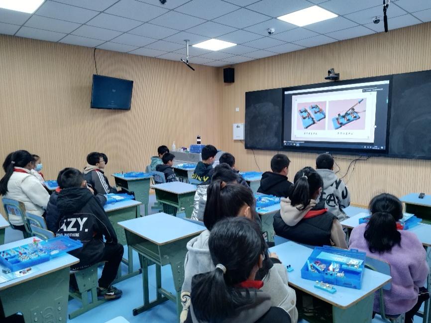 随后,杜鹏辉以直播教学的形式带领学生们做两个电路小实验。第一个小实验,他带领学生们正确连接电路,通过手摇发动机点亮小灯泡,让学生感受灯泡正常亮时发动机的转速。第二个小实验,他引导学生观察通电的绕线铁钉是否吸引硬币,初步引入电磁铁的概念。最后,杜鹏辉带领学生们正确拆解电路。每完成一个步骤,他会让学生们举手示意,再进行下一步操作。