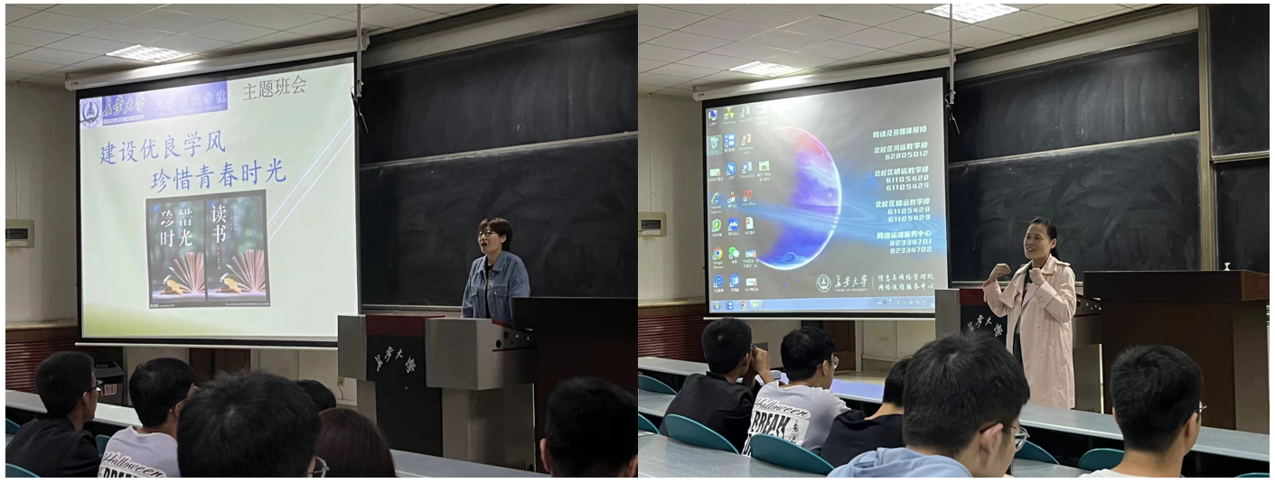 在本次主题班会中,张静老师、阎贝老师首先向同学们讲解了开展学风建设的目的及重要性,指出践行优良学风应该遵守的行为规范。希望同学们端正学习态度、激发学习动力、明确学习目标、找到行之有效的学习方法,最终营造良好的校园学习环境,以实际行动践行优良学风建设。