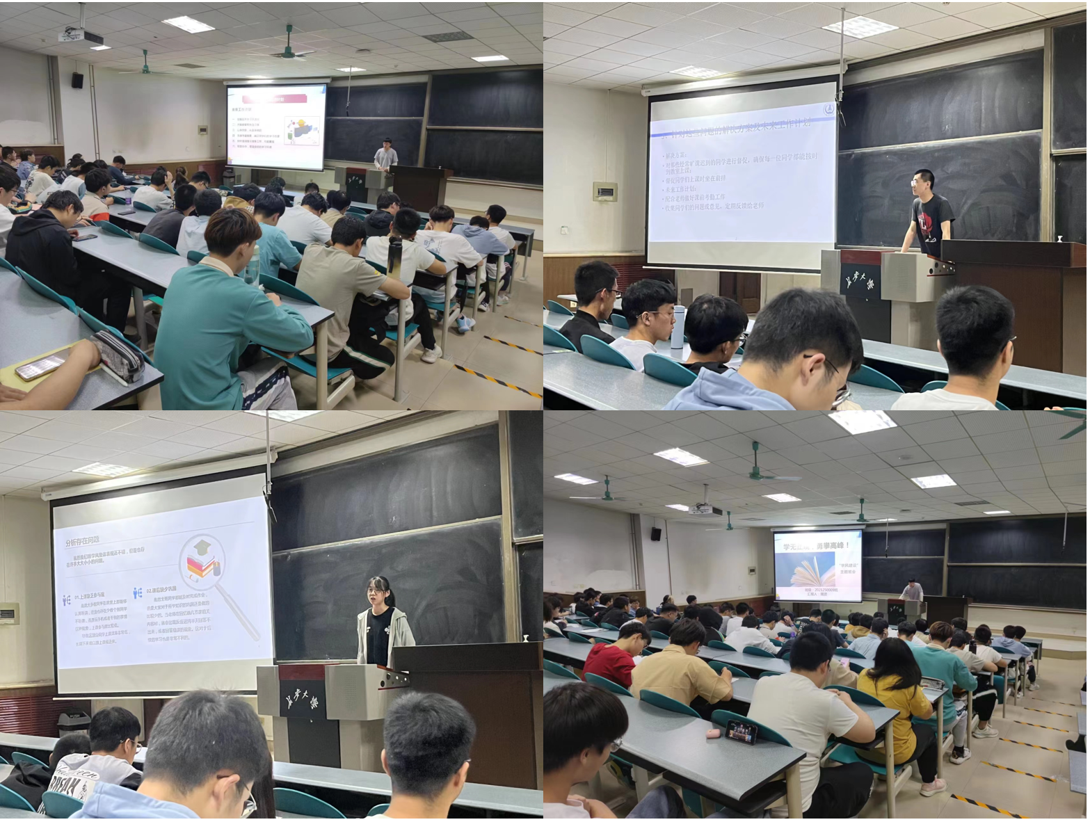 各班班长及学委积极发言,分别就本班具体情况进行了中肯、全面、细致的评价,指出在个人、寝室、课堂等各个环节中存在的问题,并针对问题给出改进措施。