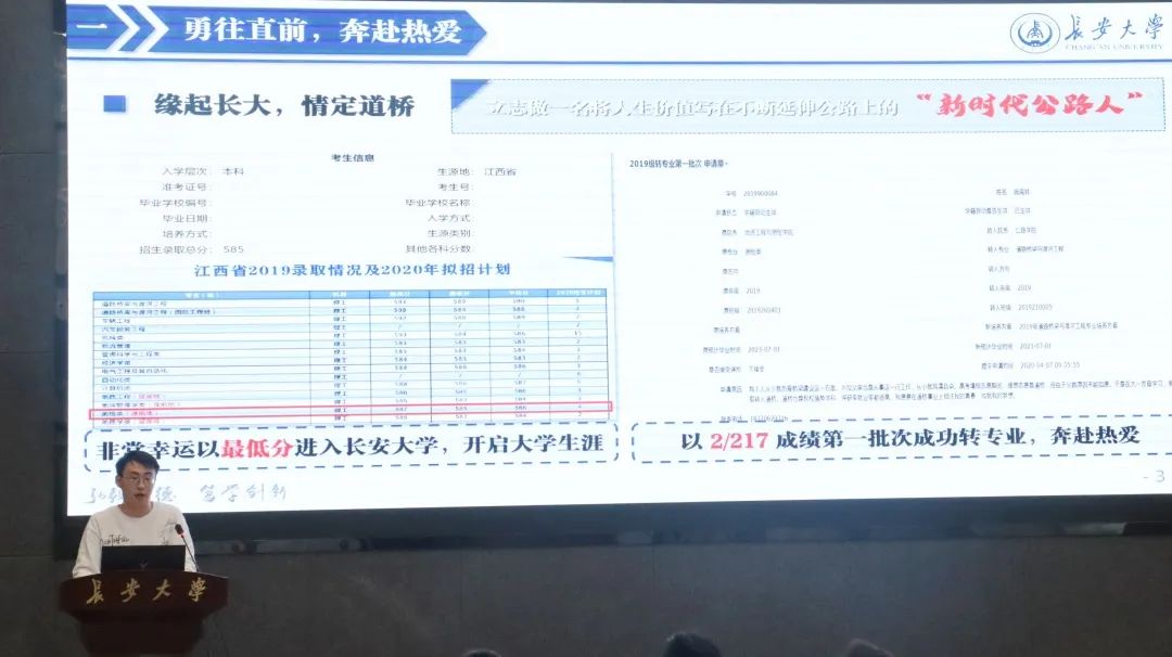 第三位进行分享的是“长大之星·个人”获得者赵海峰同学。在短暂的自我介绍后,赵海峰同学从学习方法、竞赛科研、保研准备三个方面进行了分享,详细地介绍了自己多年保持专业成绩排名第一的方法,并鼓励同学们要勇敢地迈出第一步,一切皆有可能。