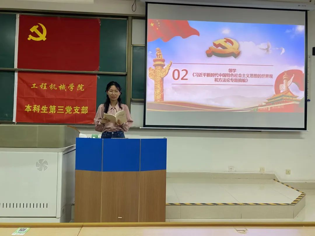 会上,各支部认真学习了《习近平新时代中国特色社会主义思想的世界观和方法论专题摘编》,针对马克思主义中国化的背景、历程和内涵进行了学习和探讨。会上提到,推进马克思主义中国化时代化是一个追求真理、揭示真理、笃行真理的过程,希望各位学生党员以党史学习为基础,以学习贯彻习近平新时代中国特色社会主义思想为重点,以全面提升支部基层战斗堡垒作用为目标,踏实做好本次主题教育。