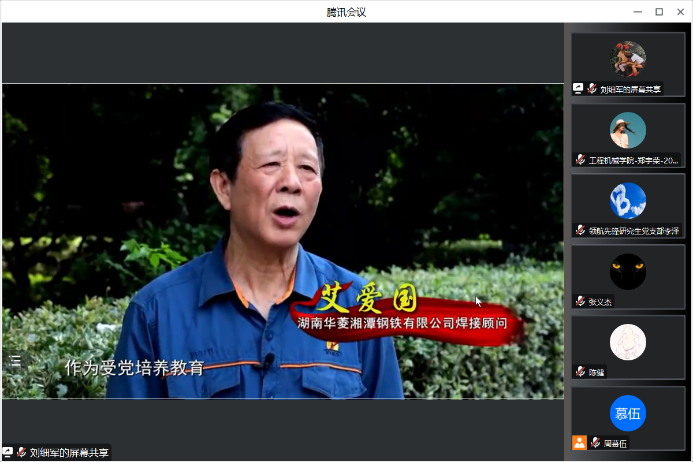 作为焊接领域的“大国工匠”,艾爱国在焊工岗位上工作50多年,攻克焊接技术难关400多个,改进工艺100多项,多次参与我国重大项目焊接技术攻关和特种钢材焊接性能试验。艾爱国在湘钢工作一辈子,最高职务就是焊接班的班长,领导曾经多次想提拔他,艾爱国都婉言谢绝了。退休之后,女儿想把他接过去安享晚年,但艾爱国选择了留在湘钢。如今,70多岁的艾爱国,早上7点半前上班,下午6点半后下班,几十年不变地骑着他那辆破旧自行车,继续奋战在焊接工艺研究和操作技术开发第一线。观看完本期视频,支部成员纷纷发表了自己的心得感悟。