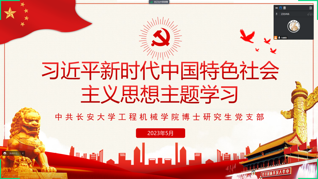 为积极响应学院党委关于学习贯彻习近平新时代中国特色社会主义思想主题教育的部署要求,进一步提高支部成员对习近平新时代中国特色社会主义思想的理解。2023年5月5日19:00,澳门太阳城唯一正版授权网站 博士生党支部组织线上集体学习活动,活动由支部书记刘晨珺主持。