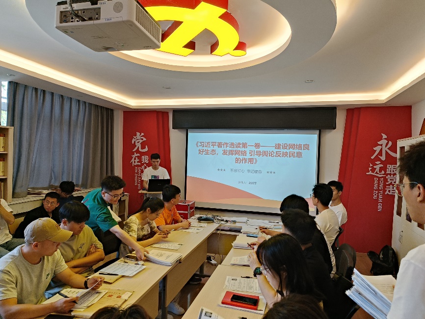 为深入开展学习贯彻习近平新时代中国特色社会主义思想主题教育,引领党员践行初心使命,2023年6月9日上午,澳门太阳城官网 领航先锋研究生党支部在学院党建活动室开展了第三十五期“品读经典,锤炼党性”读书分享活动,本次读书分享活动对照支部主题教育学习安排,由支部成员张义杰、赵科宇领学。