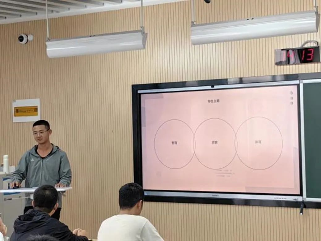 接下来文体委员刘鸣宇就体育建设方面,首先强调了保持身体健康的重要性,督促大家保质保量完成“乐跑”活动。同时给大家详细介绍了即将开展的体测项目,并给同学们分享了切实有用的经验,争取实现班级全员合格的目标。