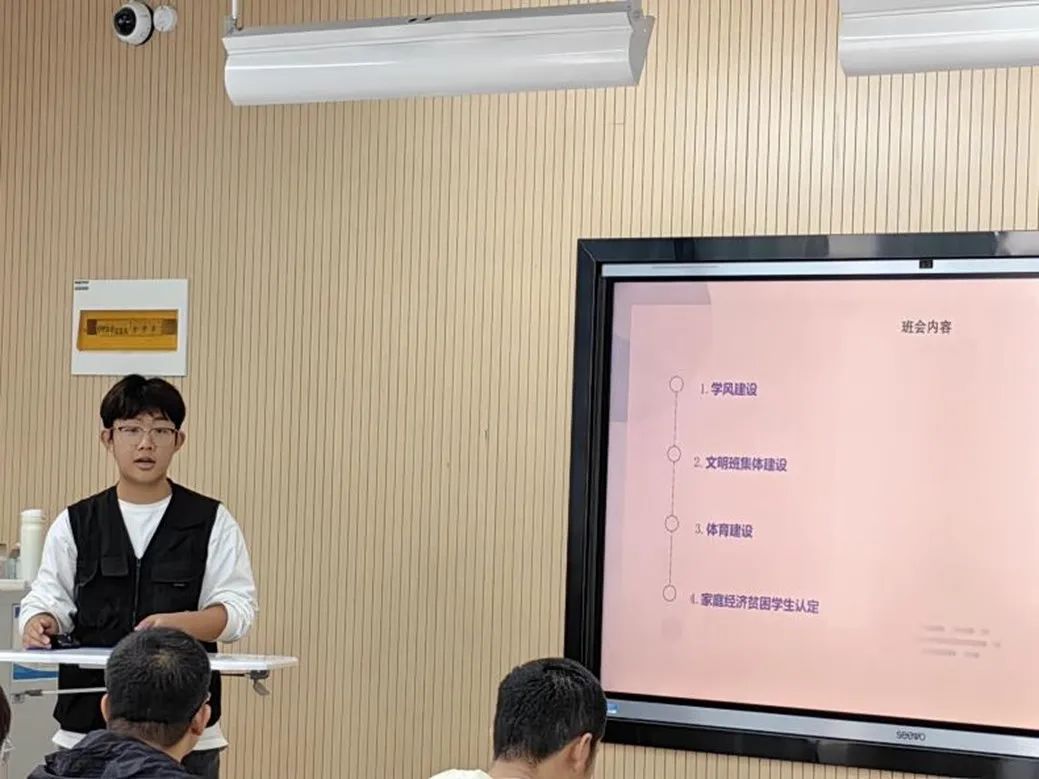 随后,班长田仁政根据文明班级集体的建设重点和目标,在德育、智育和体育三个方面分别提出了班级的建设方向和工作规划,号召同学们积极参与班级活动,共同打造积极向上、学风优良、和谐友爱的班级氛围。同时为帮助大家加强政治理论学习,树立正确的价值观,团支书乔佳鹏表示后续将开展形式多样的班级团日活动,获得了同学们的一致支持。