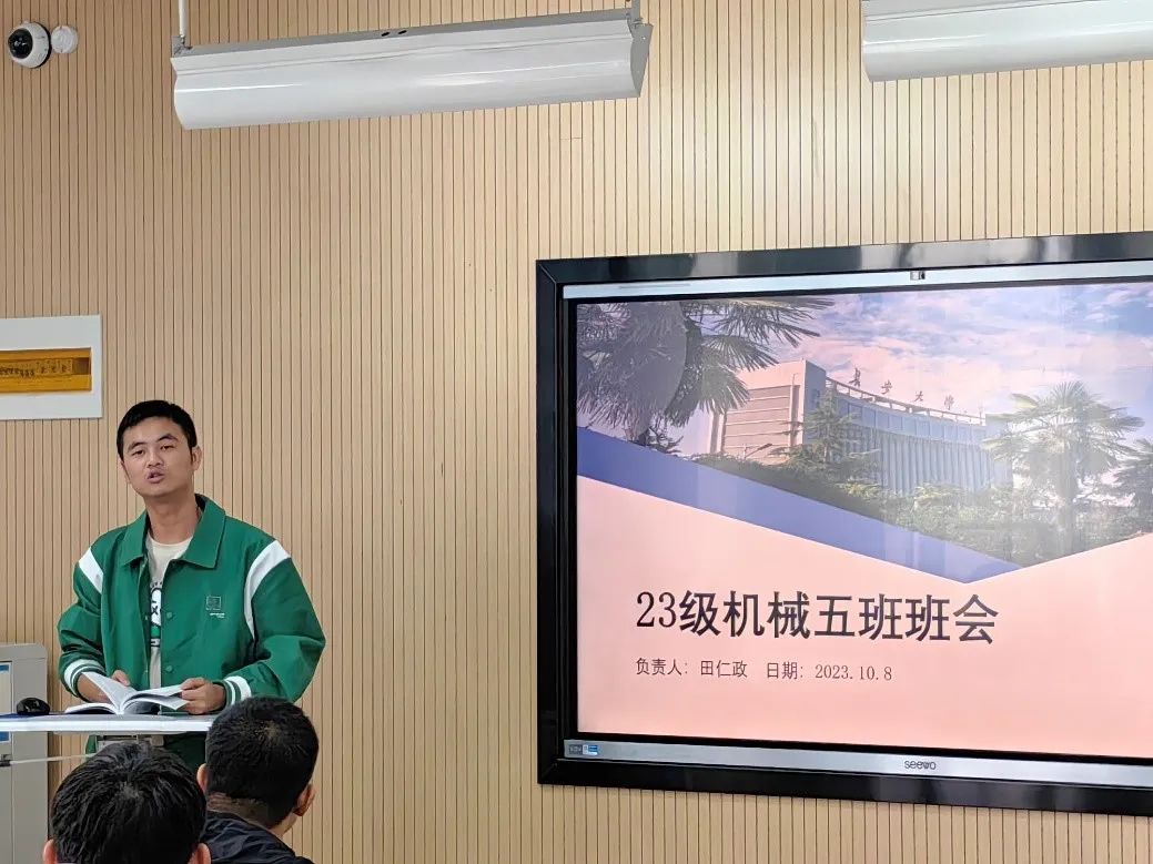 为传达学校相关文件要求,保证班级活动顺利开展,10月8日,澳门太阳城官网 2023级机械5班召开了第一次班会。本次活动由班长田仁政、团支书乔佳鹏等班委组织举办,2023级辅导员左意老师和全班同学参加。