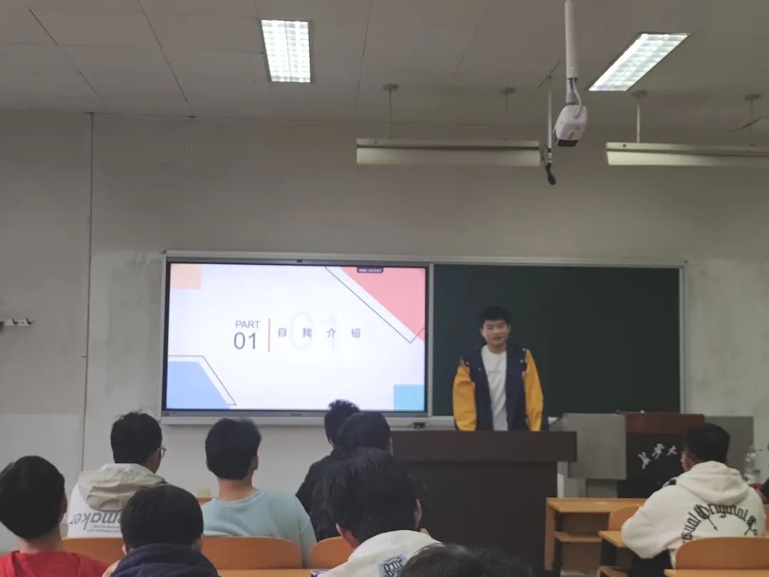 其次,班级成员进行自我介绍,大家从自己姓名、家乡、个人的兴趣爱好、未来两年的初步规划等一一进行自我介绍,希望未来两年班级成员间加强交流协作,相互帮助,共同进步,一起度过剩余两年的大学时光。