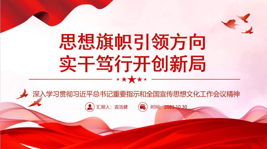 会议上,袁浩健同志首先介绍了习近平文化思想提出的背景及其重要性。习近平总书记在新时代文化建设方面的新思想新观点新论断,内涵十分丰富、论述极为深刻,是新时代党领导文化建设实践经验的理论总结,丰富和发展了马克思主义文化理论,构成了习近平新时代中国特色社会主义思想的文化篇,形成了习近平文化思想。