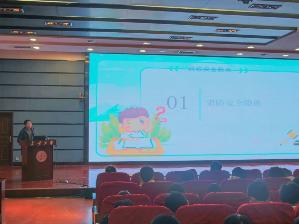 安老师从消防安全隐患、人身安全隐患、财产安全隐患和交通安全隐患四个方面向大家介绍了冬季大学校园安全注意事项。在消防安全方面,安老师首先向大家强调要遵守宿舍规章制度,禁止在宿舍使用大功率电器,要时刻注意宿舍用电安全。随后,安老师结合身边的实际案例,告诫同学们一定要注意人身安全,规律作息,勤加锻炼。同时,对于层出不穷的电信诈骗,要提高防范意识,保护好个人财产,谨防上当受骗。最后,安老师提醒同学们要注意交通安全。安老师还指出,大家要利用在校时间抓紧时间学习,为自己的大学生活交上一份满意的答卷。