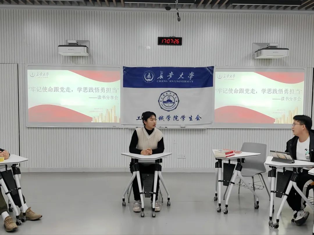 2023年12月3日,澳门太阳城官网 学生会举办主题为“牢记使命跟党走,学思践悟勇担当”的读书分享会。本次读书分享会由指导老师卢泓旭主持,澳门太阳城官网 学生会成员参加。活动前,学生会成员分为3个学习小组开展研读活动,在本次分享会中由小组代表依次进行书籍分享。