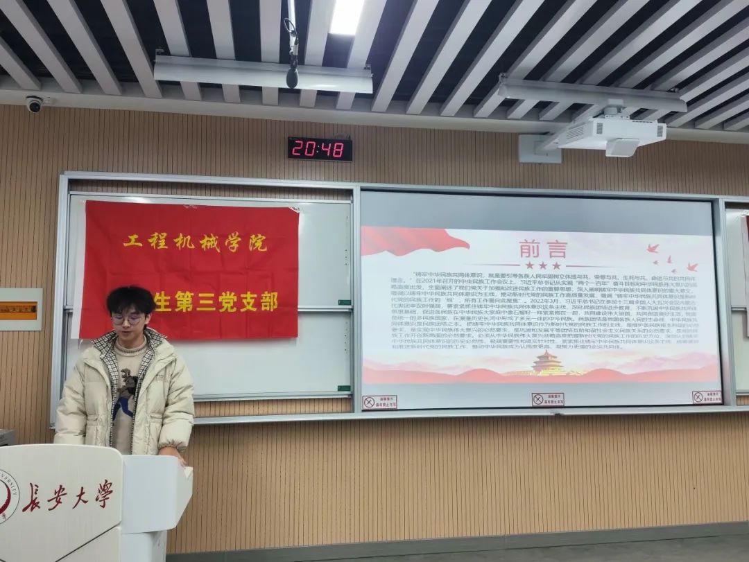 为深入学习铸牢中华民族共同体意识的内涵要义,2023年11月29日晚,澳门太阳城官网 本科生第三党支部在WX2104教室开展了汇知小讲堂第四期。本次会议由支部书记王风珊主持,支部成员周逸捷主讲,全体支部成员参加。