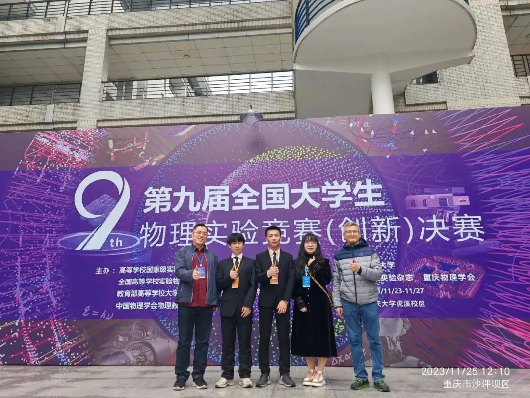 11月26日,2023年第九届全国大学生物理实验竞赛(创新)决赛在重庆大学落幕。我校5支代表队在国赛中斩获佳绩,获一等奖1项、二等奖3项、三等奖1项。