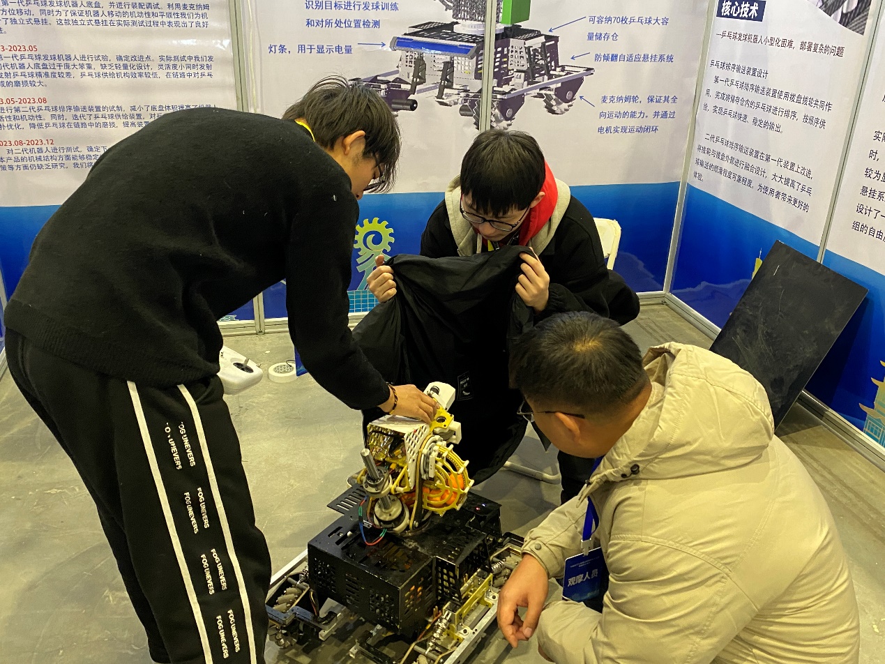 12月17日至19日,由共青团中央、工业和信息化部共同主办的2023全国大学生机器人科技创新交流营暨机器人大赛在山东日照举行。工程机械机器人队积极响应团省委和校团委号召,认真备赛,由澳门太阳城官网 黄超雷老师指导,周志垚佳、许冠华、钱来守一等同学完成的作品《全自动乒乓球陪练机器人》在全国431所高校的1017件作品中脱颖而出,斩获一等奖的荣誉。