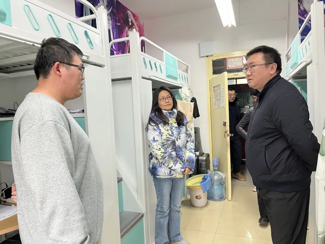 在走访各年级宿舍的过程中,雷剑、贺朝霞及各年级辅导员询问了同学们的假期生活,倾听同学们对于学习生活方面的意见需求,鼓励同学们尽快调整学习状态,叮嘱同学们养成良好的个人卫生习惯,共同营造良好的宿舍环境。此外还对大四年级学生的就业、考研情况进行了详细询问。