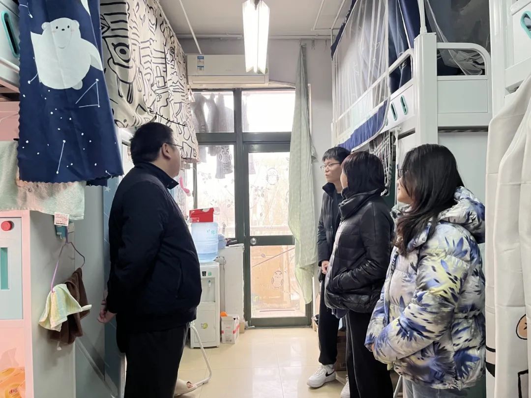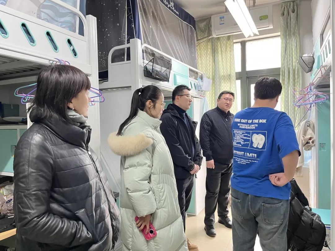 新学期伊始,为深入了解学生返校后的学习生活情况,做好学生教育管理工作,加强学生宿舍安全管理,2月28日上午,澳门太阳城官网 党委副书记雷剑、副院长贺朝霞与各年级辅导员老师前往学生公寓进行宿舍走访工作。