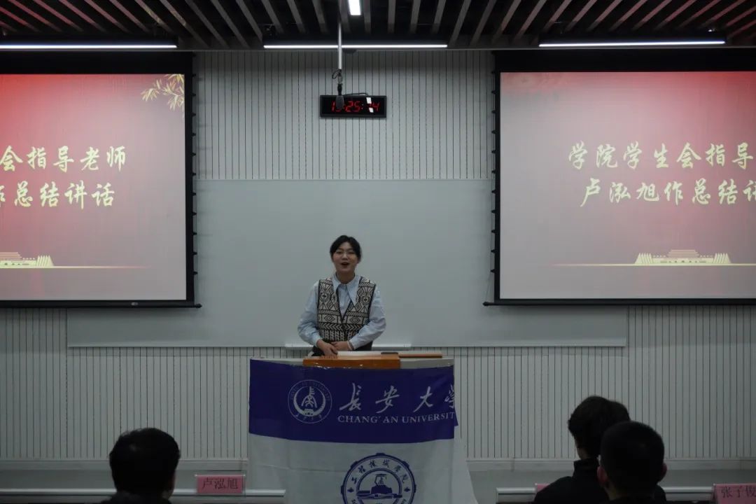 会议第三项,学生会指导老师卢泓旭作总结讲话。她首先感谢了学生会各位干部上学期的辛苦付出,肯定了大家的工作成果。同时对学生会新学期的工作提出要求:第一,学习成绩要重视,学生干部要在各个方面起到先锋模范作用,在学习方面起到正面积极的作用,为学院营造良好的学习氛围。第二,活动质量有保障,各部门在开展活动前后,要开展调研工作,举办更符合学生期待的活动。第三,网络发言要谨慎,作为学生干部要提高辨别能力,网络发言要保持谨慎的态度,面对不当言论要敢于在网络发声亮剑,肃清网络空间。最后,她对各部门新学的工作规划进行了详细地指导。