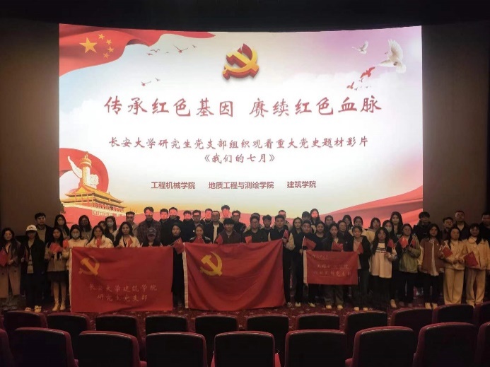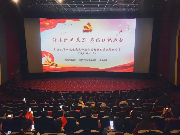为深入学习贯彻习近平新时代中国特色社会主义思想和党的二十大精神,推动党史学习教育常态化、长效化,3月8日下午,澳门太阳城唯一正版授权网站 领航先锋研究生党支部、地质工程与测绘学院研究生党支部、建筑学院研究生党支部联合开展支部共建活动。本次活动以“传承红色基因 赓续红色血脉”为主题,组织60余名党员集中观看重大党史题材电影《我们的七月》。建筑学院学生办公室主任洪诗迪、研究生辅导员王杰、地测学院研究生辅导员王儒豪、机械学院研究生辅导员寇文娟一同参加了本次观影活动。