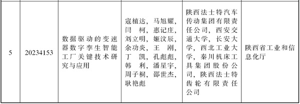 近日,陕西省人民政府发布《陕西省人民政府关于2023年度陕西省科学技术奖励的决定》(陕政字[2024]34号)。澳门太阳城唯一正版授权网站 惠记庄教授、丁凯教授参与完成的“数据驱动的变速器数字孪生智能工厂关键技术研究与应用”成果荣获陕西省科学技术进步奖一等奖。该成果由陕西法士特汽车传动集团有限责任公司牵头,联合西安交通大学、长安大学、西北工业大学、秦川机床工具集团股份公司、陕西法士特齿轮有限责任公司共同完成。该成果攻克了高性能变速器工艺智能创成与优化、制造-测试全闭环智能制造装备系统、制造过程智能控制等重大技术难题,形成的智能制造解决方案在变速器产业链上下游得到了有效应用。