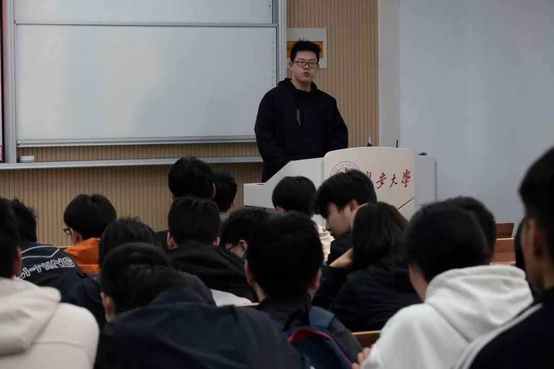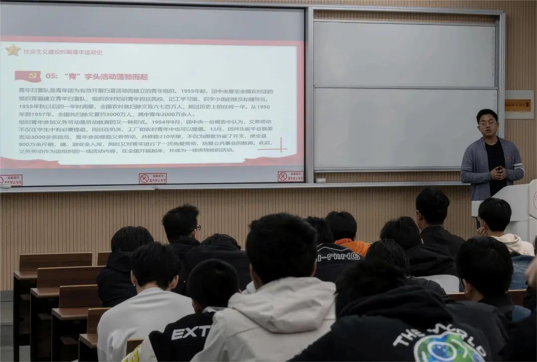 ▲学院团委副书记安桐主讲主题团课