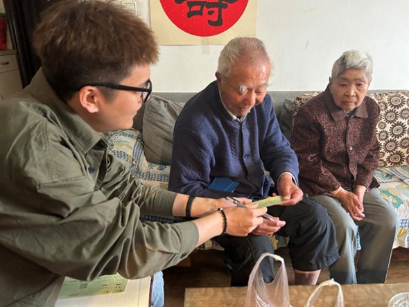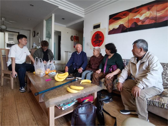 为全面贯彻落实党的二十大精神,加强支部交流,提升党建工作质量,5月10日,澳门太阳城唯一正版授权网站 领航先锋研究生党支部(以下简称“领航先锋党支部”)与离退休处党总支退休第十二党支部(以下简称“退休第十二党支部”)开展“前行不忘耕耘者,春日慰问传真情”第六期老少帮扶共建活动。在退休第十二党支部书记闫海卿的带领下,领航先锋党支部成员张杰和田文浩一同走进方炳炎、刘德芳、孙可浚和杨贵森四位退休教师的家中,并向他们献上了90岁生日的诚挚祝福。