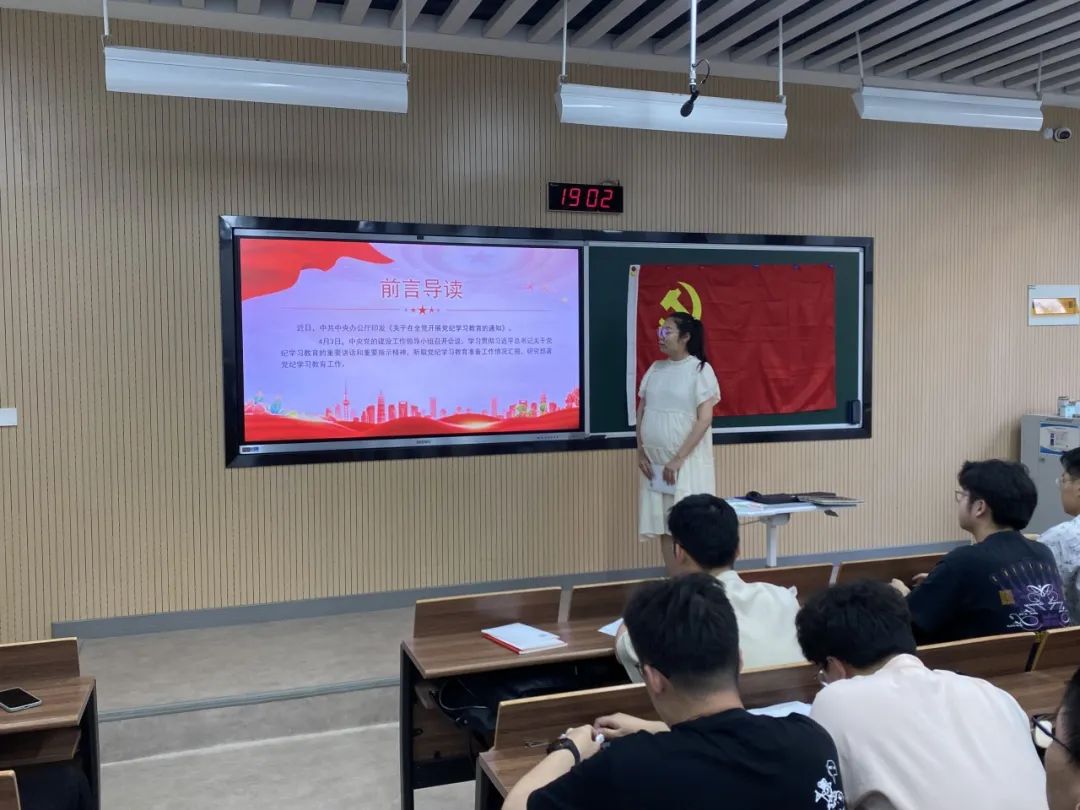 杨文佳提出本次党纪学习教育,是加强党的纪律建设、推动全面从严治党向纵深发展的重要举措,作为学生党员要搞清楚党的纪律规矩是什么,弄明白能干什么、不能干什么。随后,杨文佳带领全体学生党员学习《中国共产党纪律处分条例》,并对每一章节的重点条例进行重点学习,在学习的过程中让学生党员达到学纪、知纪、明纪的目的。