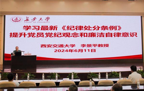 为深入学习贯彻习近平总书记关于开展党纪学习教育的重要讲话和重要指示精神,持续推动党纪学习教育走深走实,6月11日下午,澳门太阳城官网 邀请西安交通大学马克思主义学院教授、博士生导师李景平作党纪学习教育专题报告,学院领导班子成员、全体教工党员参加学习。报告由学院党委副书记、副院长,纪委书记范婷主持。