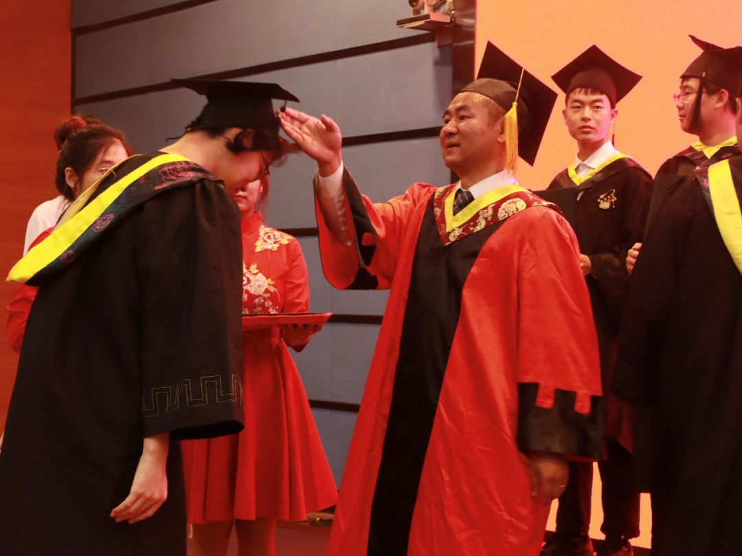 学院党委书记高雁北宣读授予博士、硕士、学士学位学生名单,学院学位委员会叶敏主席、贺朝霞副主席为毕业生授予学位,并与毕业生进行合影留念。