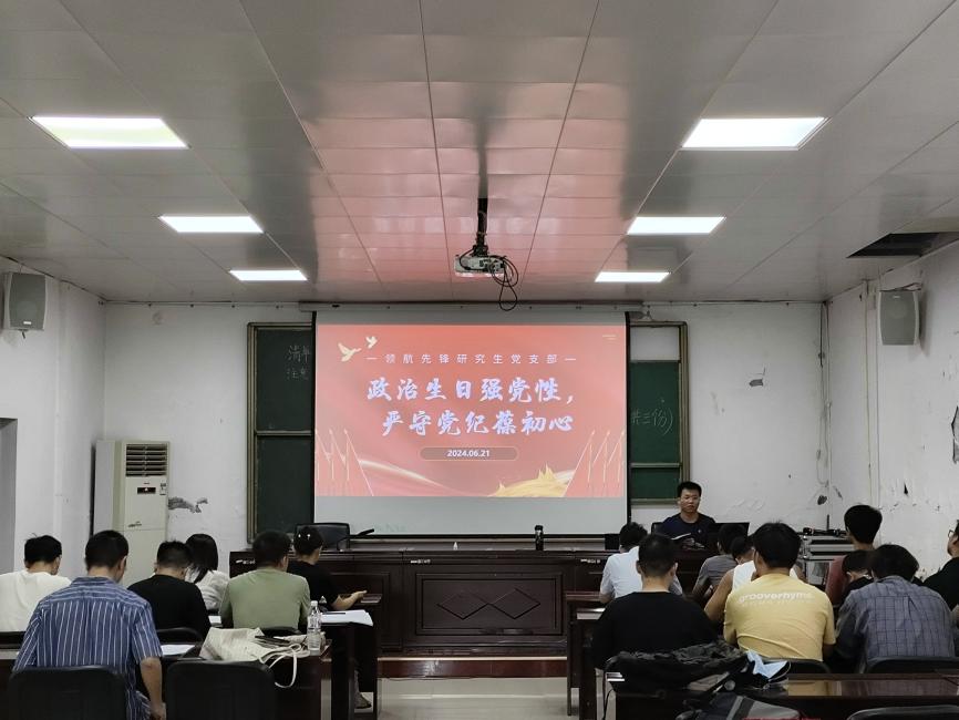 为强化党员党性观念和党员意识,引导党员时刻牢记自己的“第一身份”,增强支部党员荣誉感和归属感,6月21日,领航先锋研究生党支部于学院四楼会议室开展题为“政治生日强党性,严守党纪葆初心”的政治生日党日活动。支部全体党员参加,活动由支部组织委员王晨光主持。