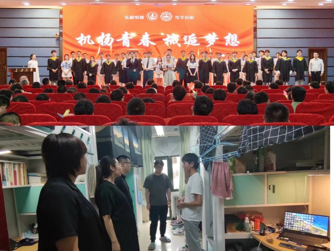 提升毕业教育温度感召力,强化育人实效。学院老师录制毕业生寄语视频并发布至新媒体平台,表达对毕业生未来发展的美好祝福和期盼。主题活动中为毕业生分发大一入学时写给未来自己的信,引导学生不忘初心;师生共同演唱歌曲《祝你一路顺风》表达难舍的师生情谊。辅导员通过每日走访毕业学生宿舍,了解关注学生心理动态、困难需求、现实压力,鼓励毕业生积极适应从学校到社会的环境转变。为毕业生做好去向登记、档案管理、行李寄存等服务工作,保障毕业生安全、有序、文明离校。