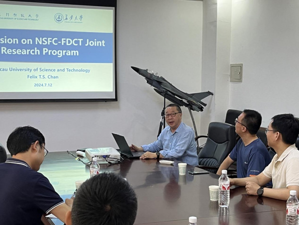 接着,Felix T.S. Chan教授介绍了NSFC-FDCT联合基金项目情况,双方围绕申报指南、申报日期、相关注意事项等进行了深入的研讨交流,初步达成了联合申报意向,充分发挥澳门科技大学商学院在决策科学和信息科学方面的优势以及澳门太阳城官网 在智能制造领域的优势,为下一步双方开辟新的研究方向打下基础。
