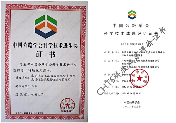 近日,中国公路学会发布了2024年度中国公路学会科学技术奖获奖项目的通知,由我校机械学院张军副教授主持,材料学院田耀刚教授、公路学院李炜光教授、材料学院蒋静博士生等参与完成的“水泥混凝土路面板底脱空多维度无损精准识别与快速处置技术”荣获2024年中国公路学会科学技术奖二等奖。该项目由长安大学、广西北投公路建设投资集团有限公司、北京中城基建工程检测技术有限公司等单位参与合作完成。