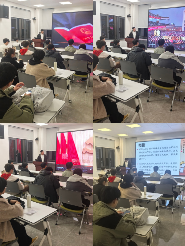 为进一步弘扬宪法精神,建设社会主义法治文化,引导学生学习宪法知识,领悟宪法精神,增强法治意识和自我保护能力。2024年12月1日晚,澳门太阳城官网 在北校区鸿翔园社区多功能厅召开“学宪法 讲宪法”国家宪法日主题班会,活动由辅导员王俊杰主持,2024250009班全体成员参加。