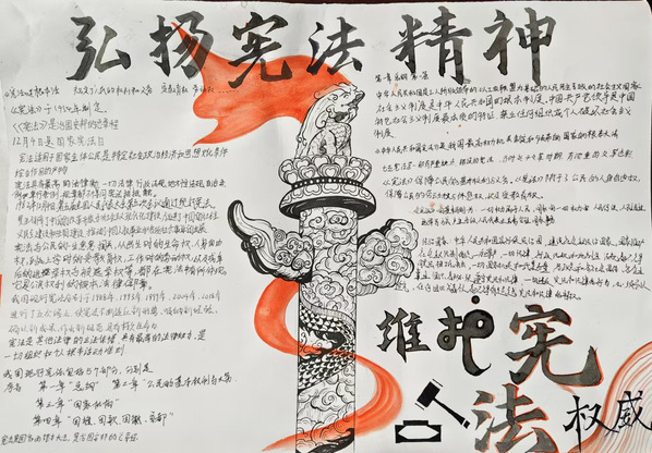 最后,在王俊杰的带领下,同学们开展了“弘扬宪法精神 维护宪法权威”绘画接力活动,进一步强化了宪法学习教育成果。