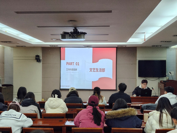 会议伊始,研会各部门负责人依次进行上学期工作总结并提出新学期工作规划,他们分享了各部门在活动策划、组织执行、成员培养以及对外交流等方面所取得的显著成绩,同时也反思了工作中存在的不足和需要改进的地方。各部门负责人表示,会努力在学生工作与科研之间找到平衡点,明确自身职责,并将以饱满的热情带领部员们投入到未来的工作中,推动学院研究生会的蓬勃发展。